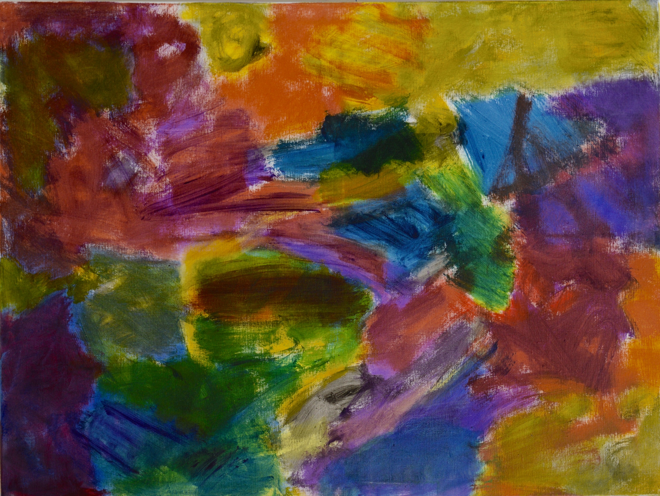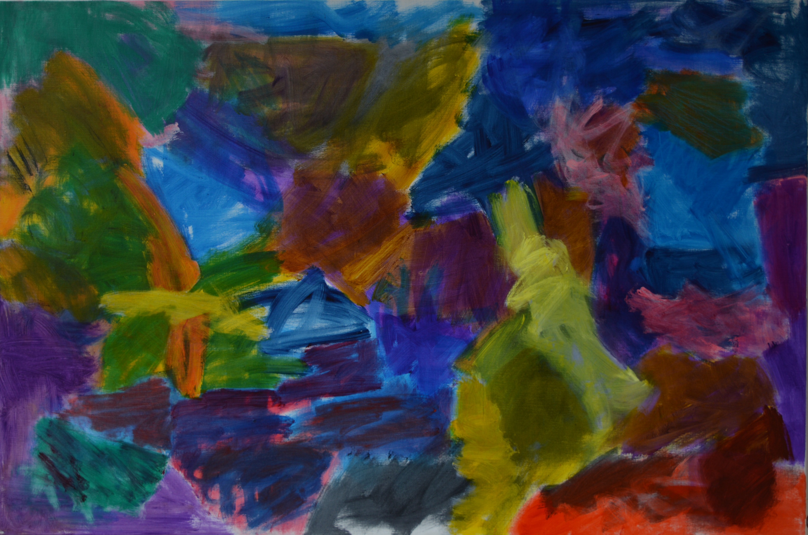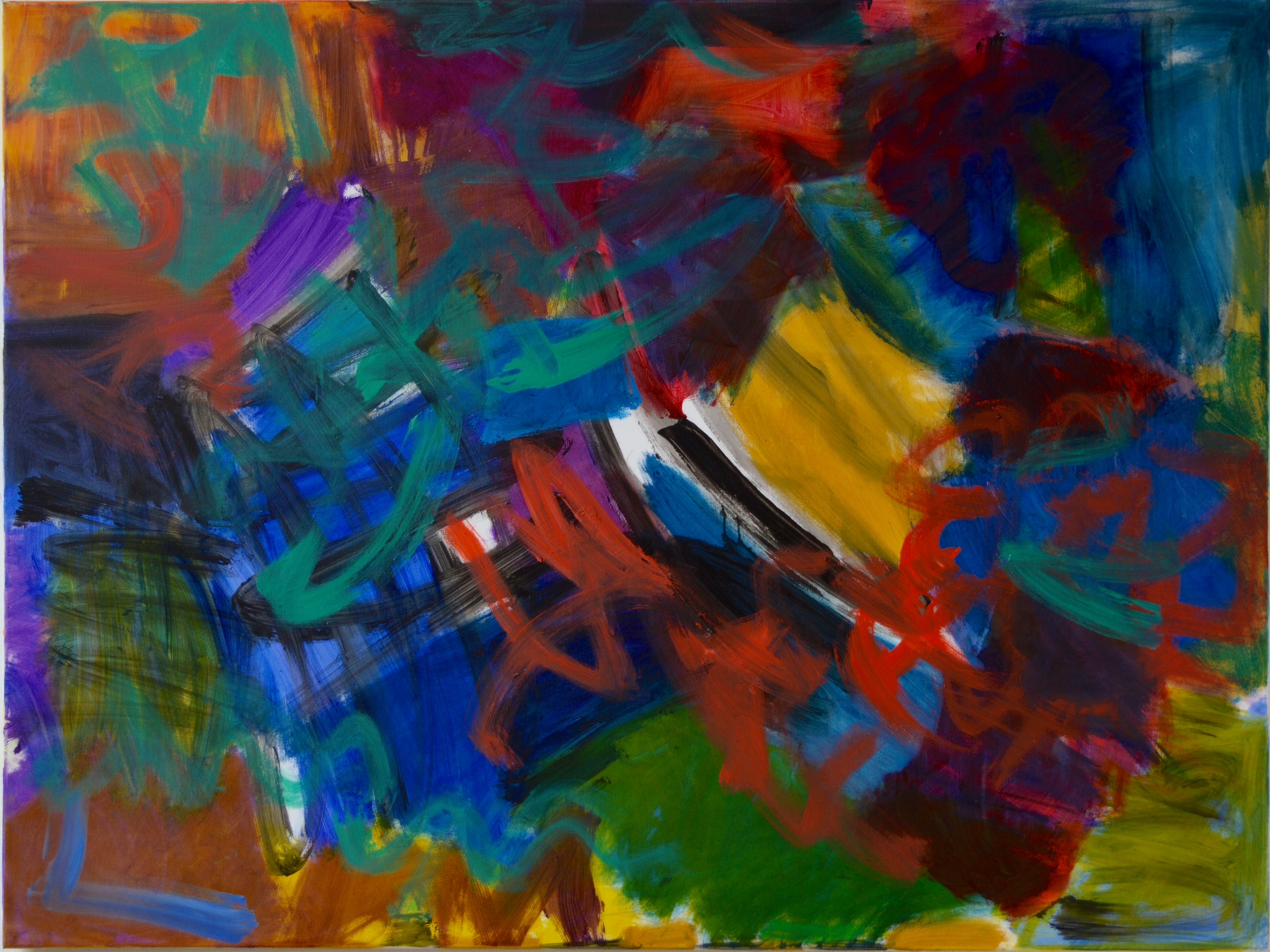 There is the excitement of the first flush of paint, as a first layer on the canvas, which I feel Hilde has retained in the finished paintings. It is an important consideration when determining the stopping point. Sometimes it is all too easy to keep going and adding more and more paint and then losing the essence and original impetus.