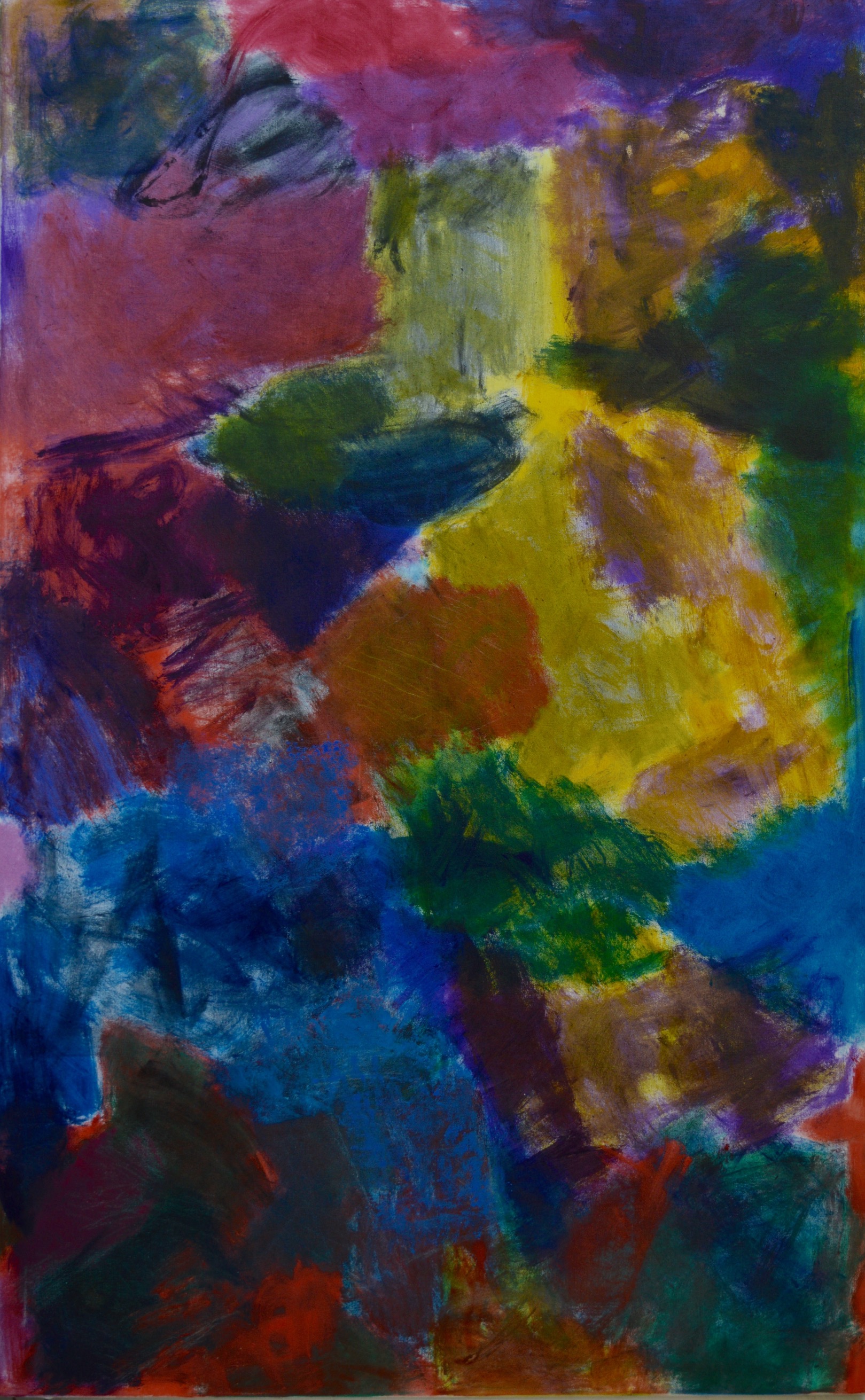 I don’t feel they are like watercolours – I’m not an expert, but I don’t think watercolour looks like this or behaves like this. It doesn’t integrate the layers (too limited a word) like this. I think the look of these paintings is very original. Looking at them again here, I’m struck by how freely-moving some of the mark-making (also too limited a word) is.