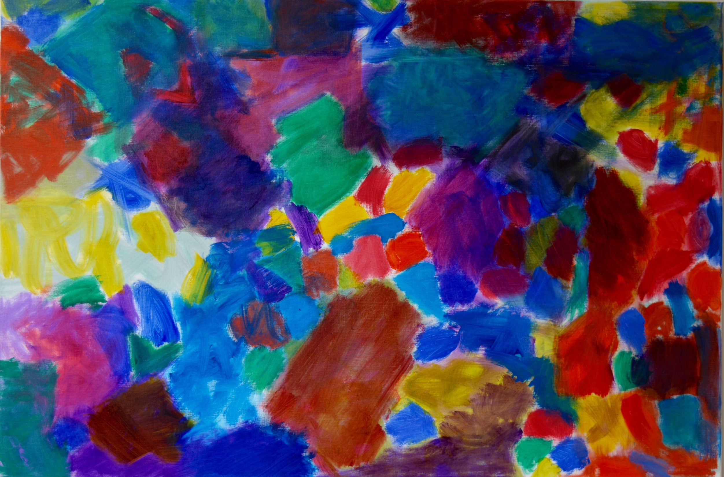 One thing that I tried to say rather badly on the film is that the patches (also too limited a word) of colour respond to each other (almost but not quite) physically rather than optically; and so the edges/margins merge and blend and bleed and disappear (to reappear); and the space becomes both particular and mobile.