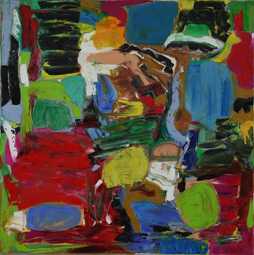A quick question. How do you like working on square canvases? Squares drive me nuts. It’s so hard to break the plane! When you talk about an animated spatiality, are you talking about what I’m calling “breaking the plane”? When you talk about the optical pressure being constant, are you talking about “bringing things back to the plane”—“squaring the cube,” (to be tricky)? No need to answer these questions, to get hung up in my “language.” Your paintings already have answered the questions really. It’s just great/refreshing/exciting to look at work that “talks” to me!