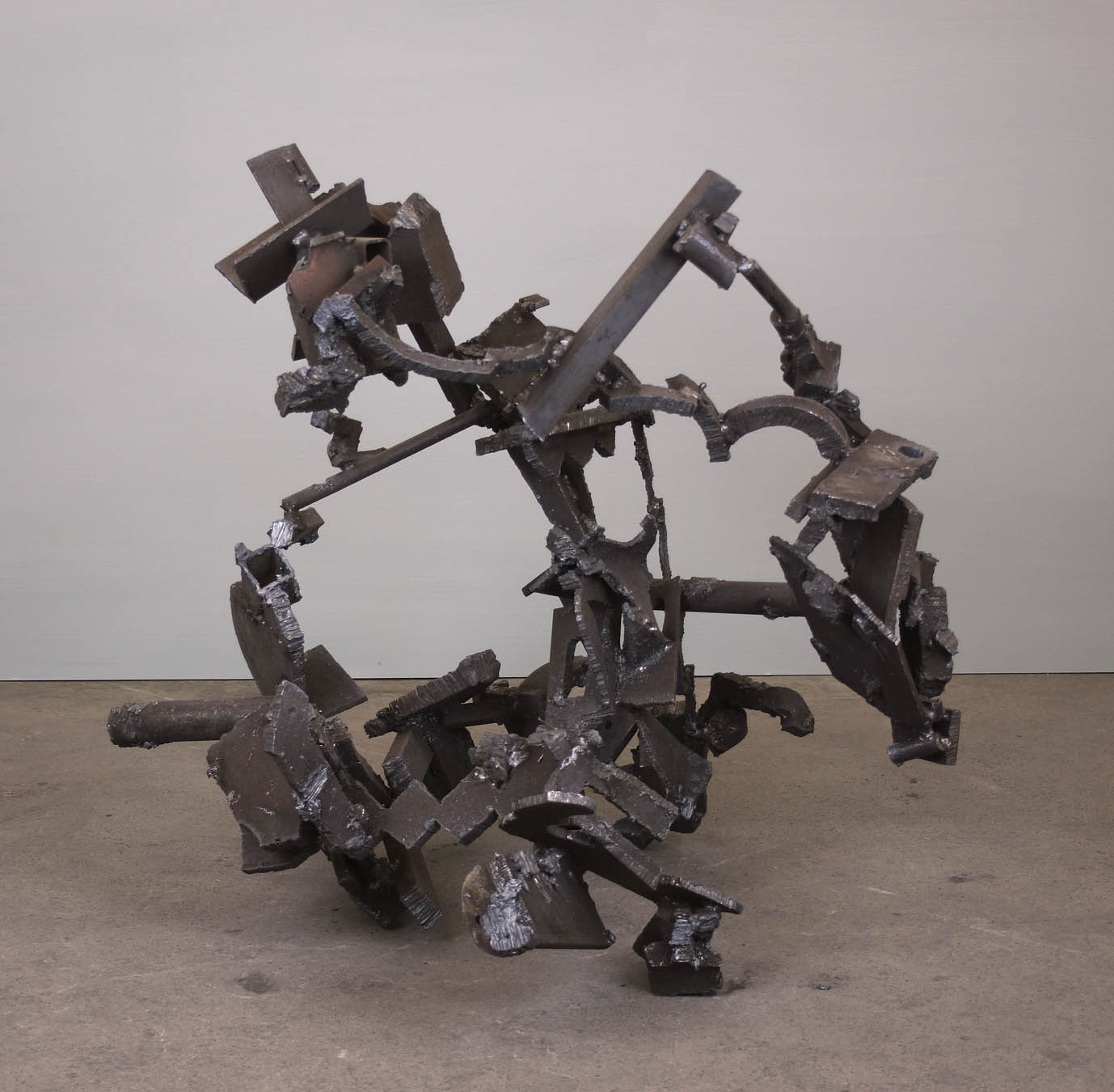 Supposing that at least one kind of engagement with sculpture involves “feeling” it in terms of a bodily projection, akin to the spatial projection that happens with painting, it seems to me that the compact and internally complex structure of these works encourages something other than the “kinetic” projection that happens with conventional sculpture based (however abstractly) on the external human form. In the absence of extruding “limbs” activating the surrounding space with potential movement, the kinetic projection is weakened and the feeling of these sculptures becomes literally more visceral – a projection of subjective-internal rather than movement-based-external bodily awareness. That in turn opens up the expressive possibilities of sculpture into new areas of subjective experience.