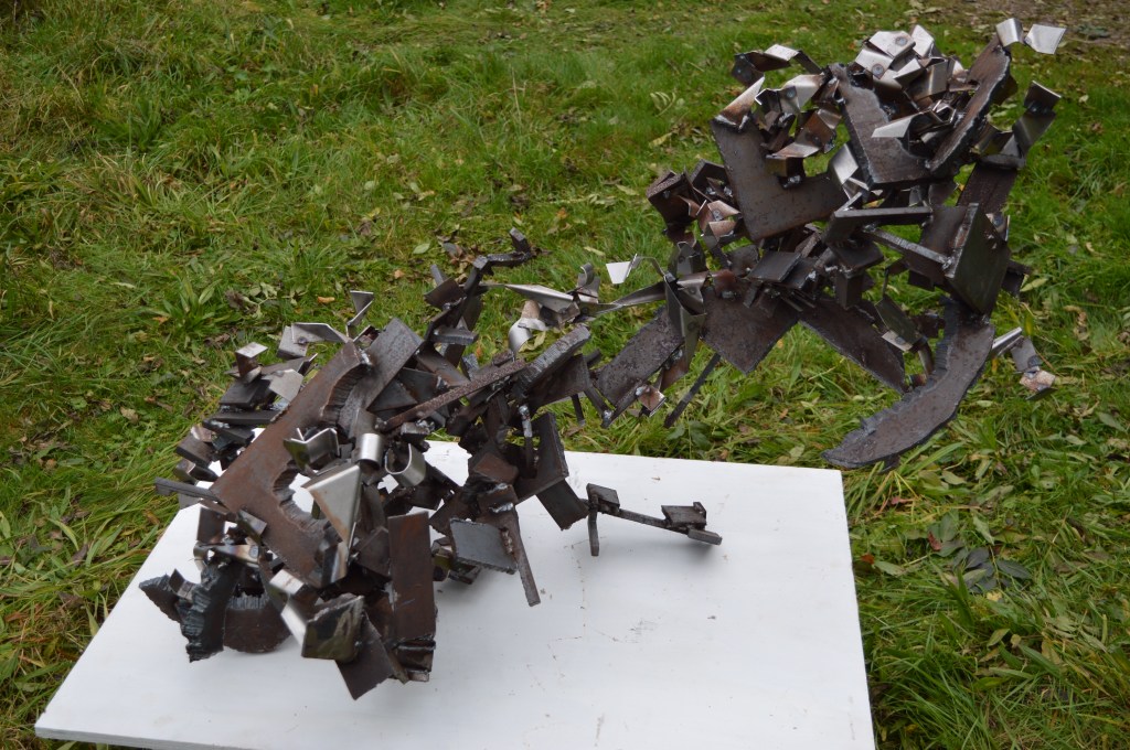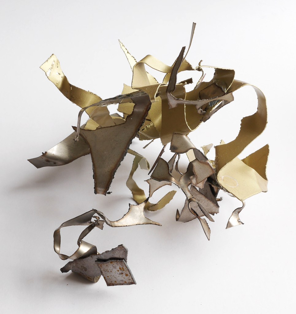 Your sculpture’ Transit of Mercury”, which I interpreted more as a torrent, is full of structure but what matters is how that literal structure of any ‘put together’ group of bits is turned over into being knowing of each other in some way. In your piece a helpful clue for me was in the “transit”/torrent { imaginative leap !] of the accumulating, spreading, squeezing, rising, supporting, projecting, the breaking away or the coming together of the two main sections. How they are both together and separate. How the randomness of the bits are felt to belong together, but free as the resistances of their individual shapes both hasten and obstruct this torrent. I would not worry about “structure or formal constraint” .I cannot see them in this work in a negative role.
