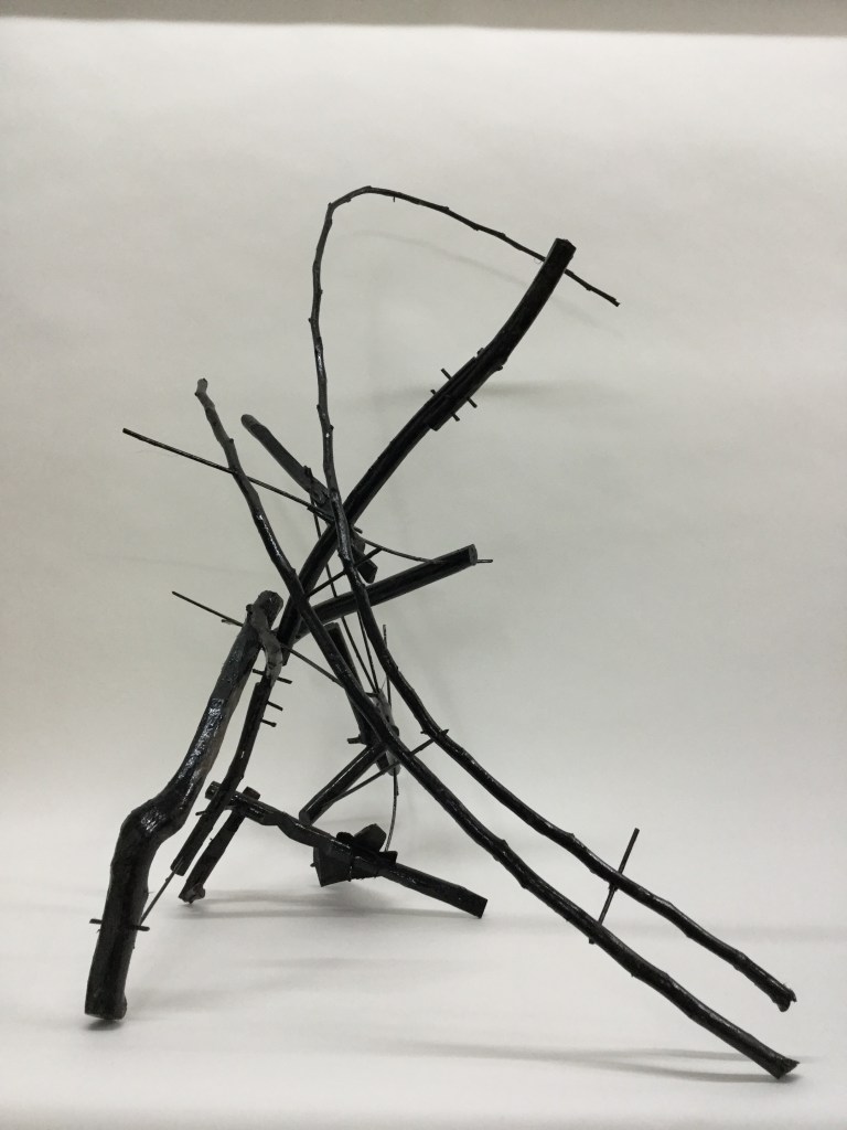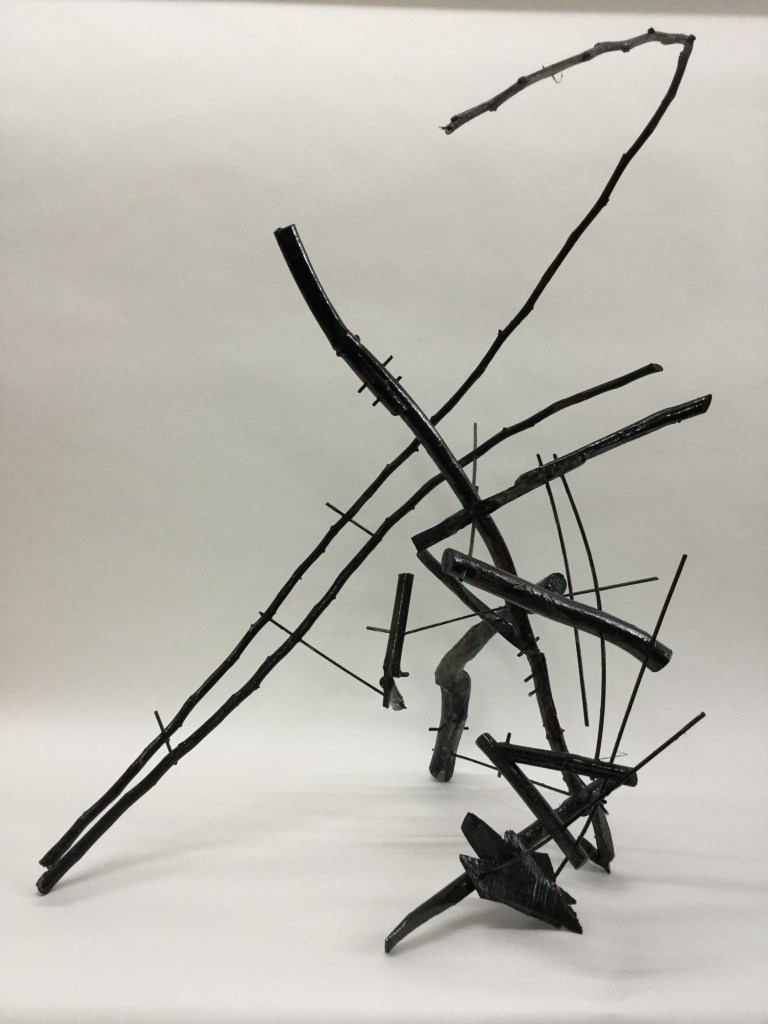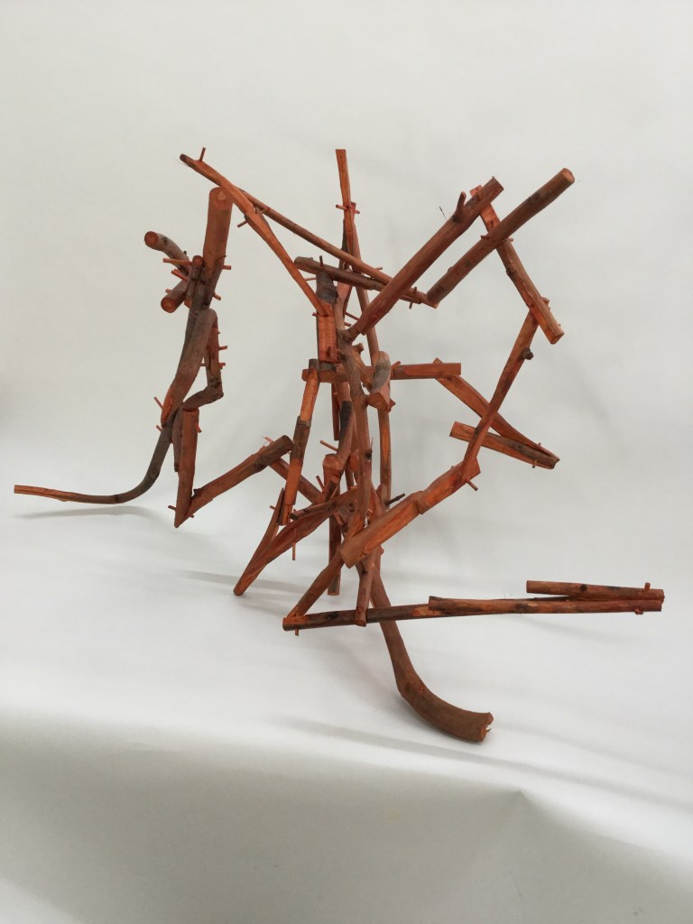 Alex’s ‘Ekoketa’ has a lot of tension built into it. In a proper discussion I would query whether that is only a bi-product of the ‘natural’ wood configurations, or whether it could be ‘made’? The relationship of the ‘pins’ with the wood ‘forms’ is inventive.