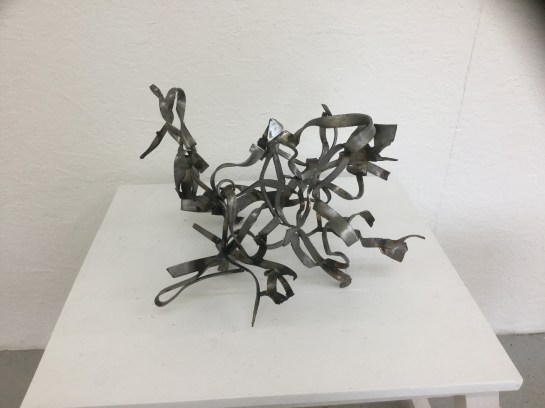 I confess to not really understanding the attraction (or appropriate meaning) of indeterminacy for abstract sculpture. I’d rather look at something that gives me a new “wholeness” every time I look at it (which negates simplistic “wholeness”), acting in many different ways. But that is not indeterminate, that’s a changing brilliance. Unfortunately most of the work here did not do that for me, with Mark’s getting the furthest by far.