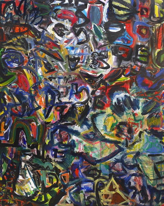 I guess the titles are relevant in the way that I created those ‘and’ the paintings, but the actual link between the title and the work is almost meaningless, certainty in terms of the ‘value’ of the work. It is interesting that you use the words ‘frantic’ and ‘discomforting’. I don’t see that at all, although I’m well aware that others do! I see ‘lively’ and ‘challenging’. I’m interested in whether you can have a good ‘frantic’ and ‘discomforting’ abstract painting or is it necessarily problematic?