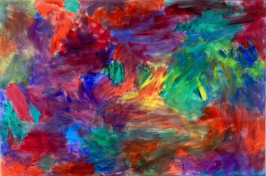 I like Strum the most on first viewing. It seems more assured in the drawing, which has a gentle rocking to it, also the use of colour. The density of the paint is really nice with the transparencies holding up well. At times, in the others, I am reminded of Friedel Dzubas in the informal handling but with a more “aquatic” palette.